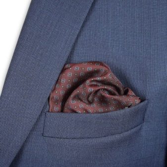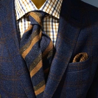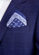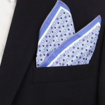 Elegir un modelo con rayas, celdas., debe tener sumo cuidado. En ningún caso el patrón debe ser el mismo que en la corbata, de lo contrario el look resultará muy estúpido y poco original. Los patrones geométricos se ven mejor en accesorios hechos de algodón, lino, en lugar de seda y lana. No debe elegir patrones muy brillantes, es mejor dar preferencia a los tonos oscuros o simplemente desaturados.