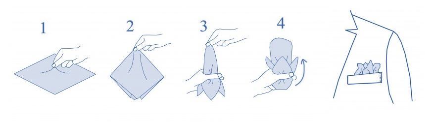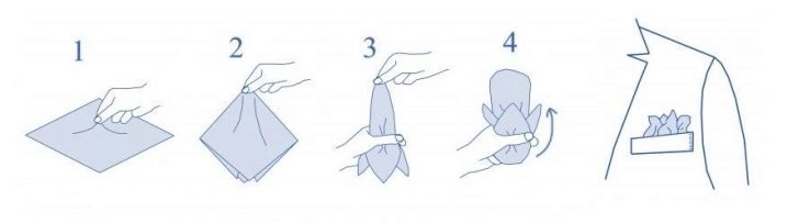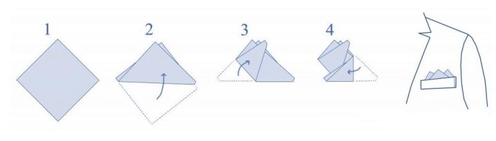 Hay varias formas de doblar pañuelos de bolsillo. Al elegir una opción adecuada, debe centrarse en la imagen como un todo.