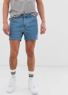 Los expertos aconsejan a los hombres altos que elijan un producto hasta la rodilla. Los modelos cortos y alargados se verán cómicos. Los modelos recortados de pantalones cortos de mezclilla son más adecuados para hombres de baja estatura, fornidos y musculosos, de tipo atlético.