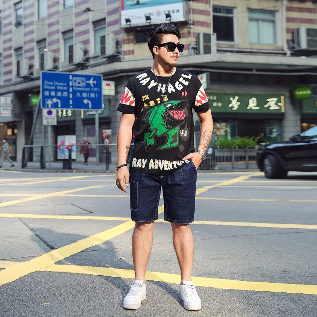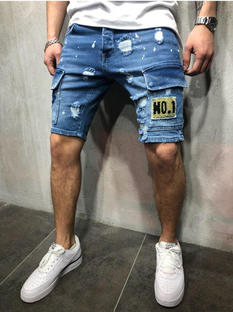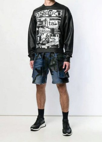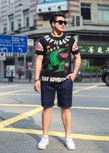 Impresiones en pantalones cortos de mezclilla para hombre. - la tendencia de las últimas temporadas. Los diseñadores no limitan su imaginación, ni la suya propia ni la de sus clientes. Por lo tanto, puede encontrar fácilmente no solo una cosa de color caqui, sino también cualquier dibujo hasta la abstracción y copias de las pinturas de Van Gogh.