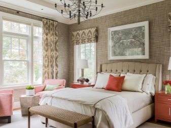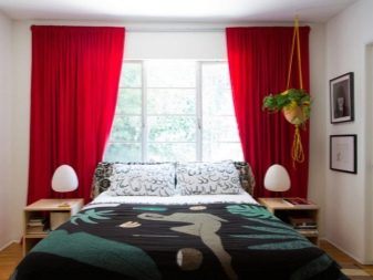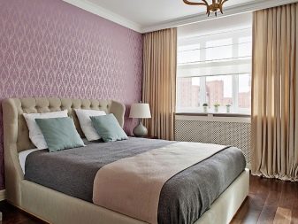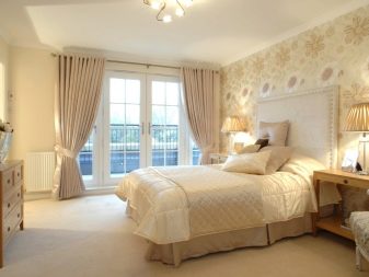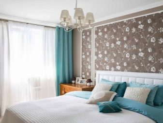 - Si hay dibujos grandes en las paredes del dormitorio, las cortinas deben ser monocromáticas. Además, cuanto más brillante y grande sea este patrón, más tranquilo debe ser el color de las cortinas seleccionadas. Esta solución equilibrará el interior y hará que la habitación sea acogedora.