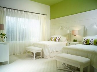 - Si se usaran dos colores para decorar el interior de la habitación, entonces uno de ellos también se puede elegir para cortinas. Por ejemplo, comprar cortinas del mismo tono que los muebles del dormitorio sería una buena solución.