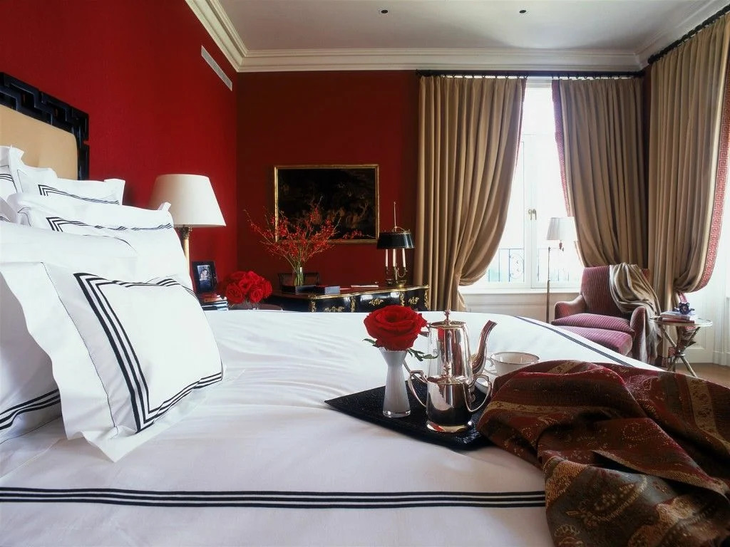 - Rojo. Papel tapiz para aquellos a los que les gusta algo extravagante y no estándar. El rojo es el color de la pasión y la ira, por lo que se recomienda diluirlo con tonos blancos, grises, dorados o azules.