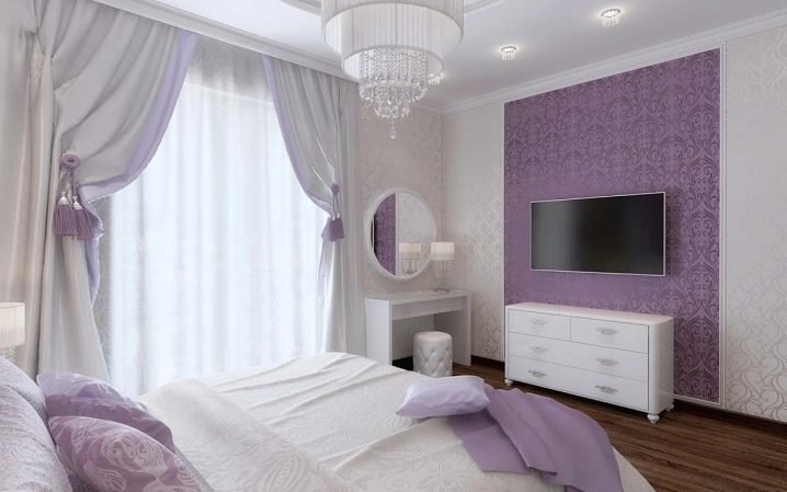 - Lila. Un color para verdaderos románticos. Se combinará bien con todos los tonos del color principal, sin embargo, al elegir la decoración de la ventana, los diseñadores prefieren los tonos blanco, burdeos y perla.