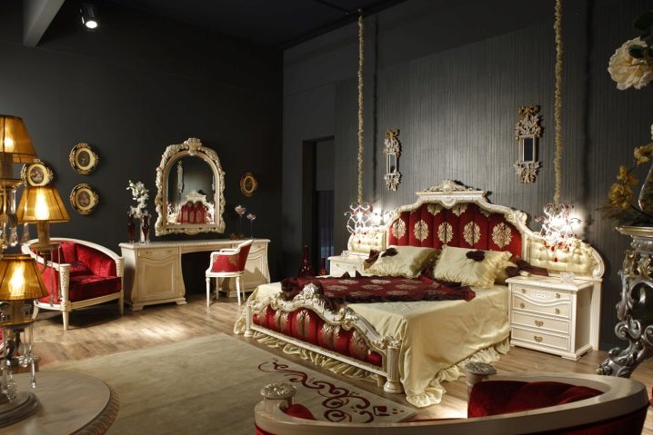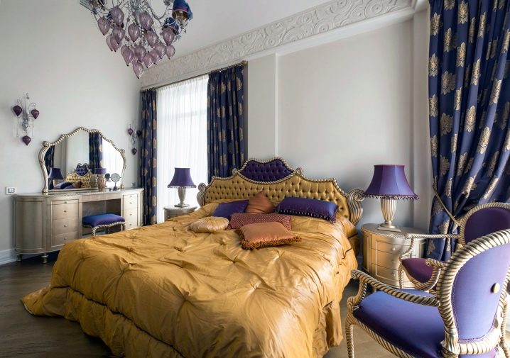 - Barroco. Una opción lujosa para el dormitorio, que es adecuada para cortinas pesadas, decoradas con hilos dorados o metálicos.