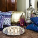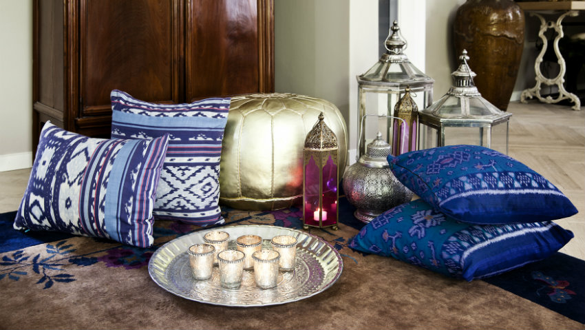 abundancia de bordados en colchas, cortinas, almohadas al estilo turco;