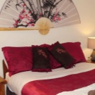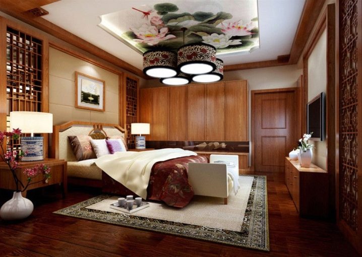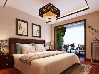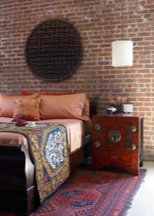 Los accesorios temáticos deben usarse como elementos decorativos. Por ejemplo, armas nacionales, jarrones con velas aromáticas, joyeros con piedras o tallados exquisitos. Lámparas inusuales, elementos de hierro forjado, pinturas con adornos tradicionales también se consideran elementos casi indispensables en el dormitorio. Las plantas vivas como las especies enanas, el bambú o las plantas bonsai son aceptables.