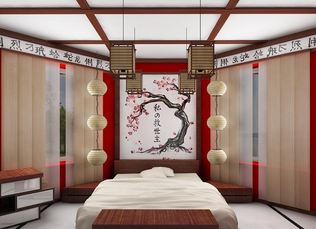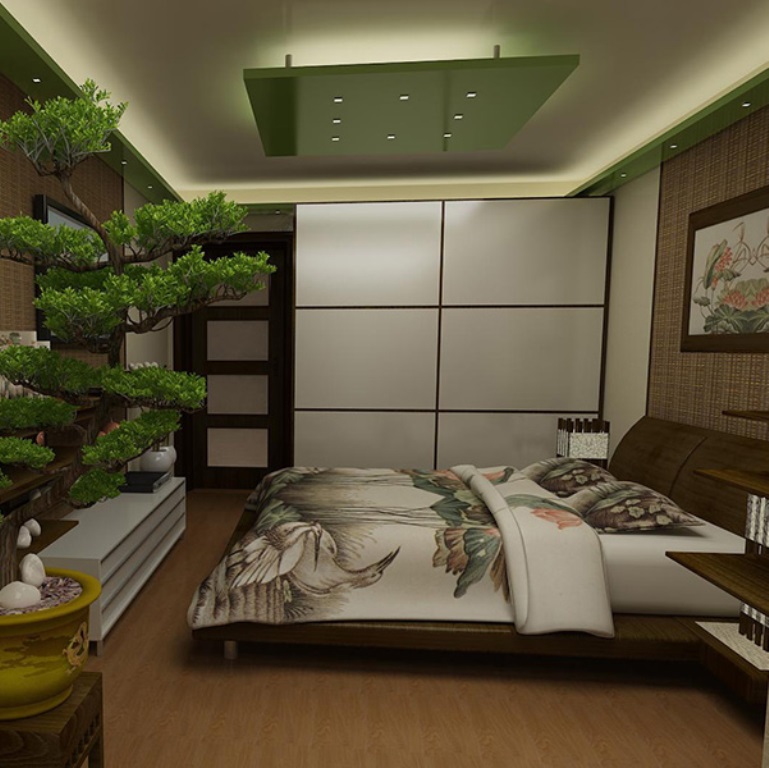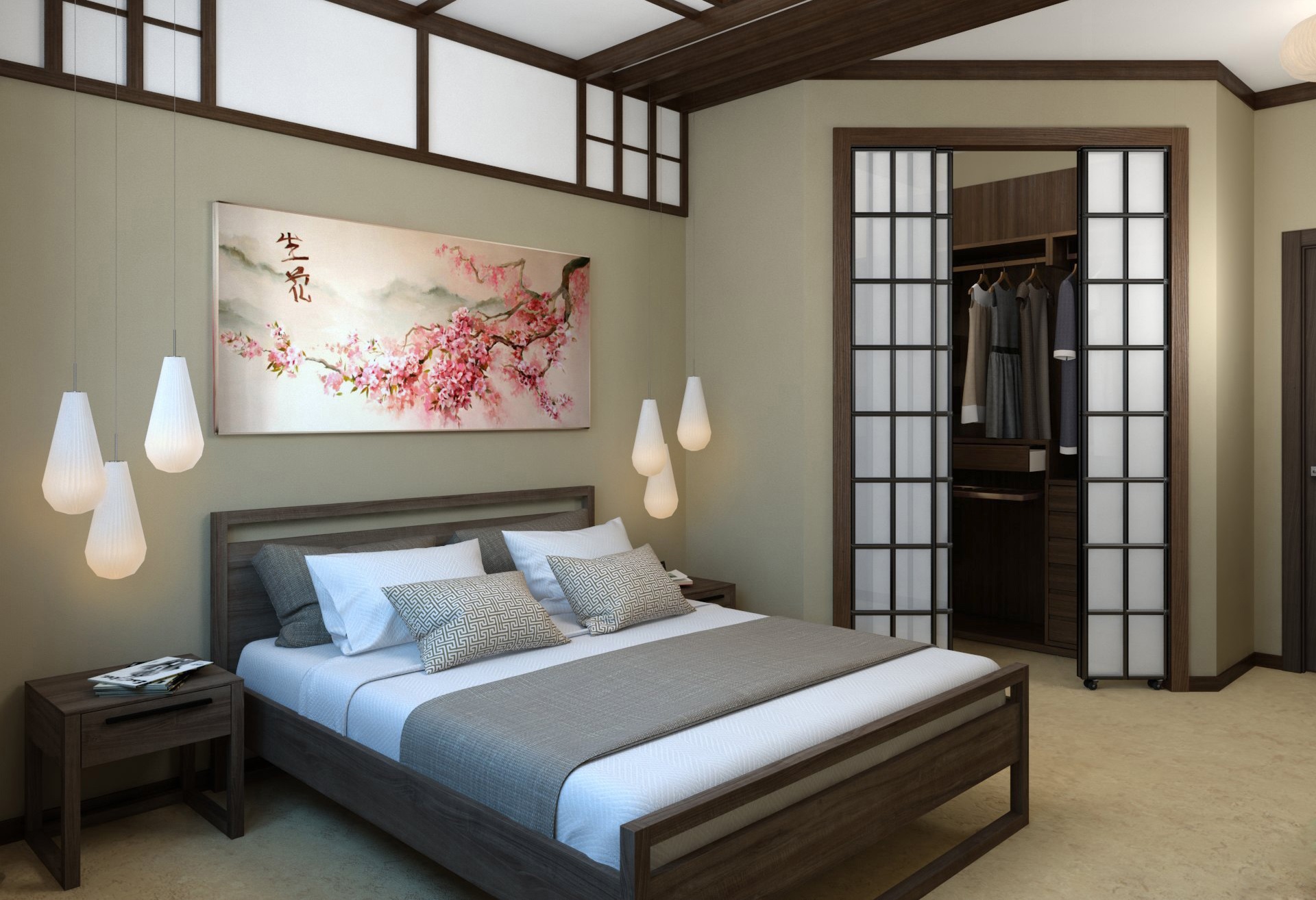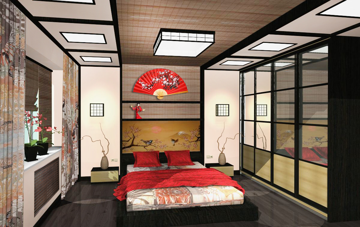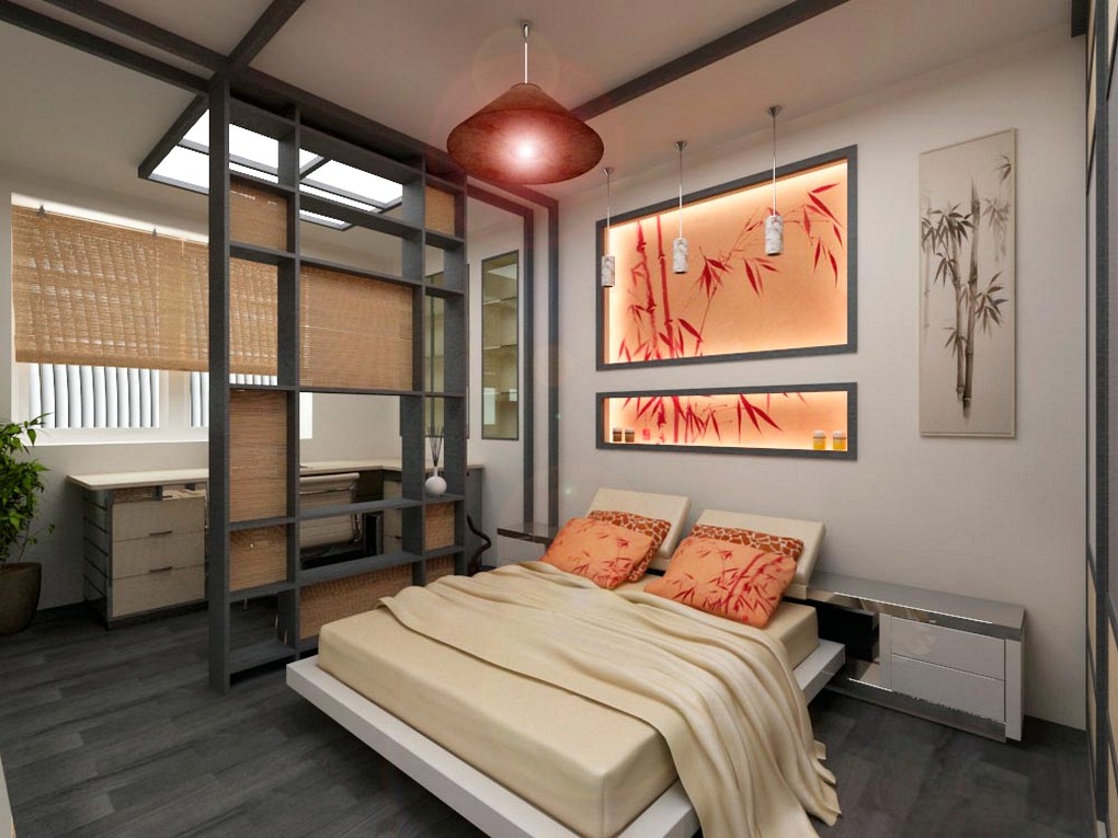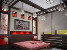 El dormitorio de estilo japonés se caracteriza por camas bajas y minimalismo en el interior. Está permitido utilizar adornos nacionales para la decoración. Los materiales siempre se utilizan solo naturales.