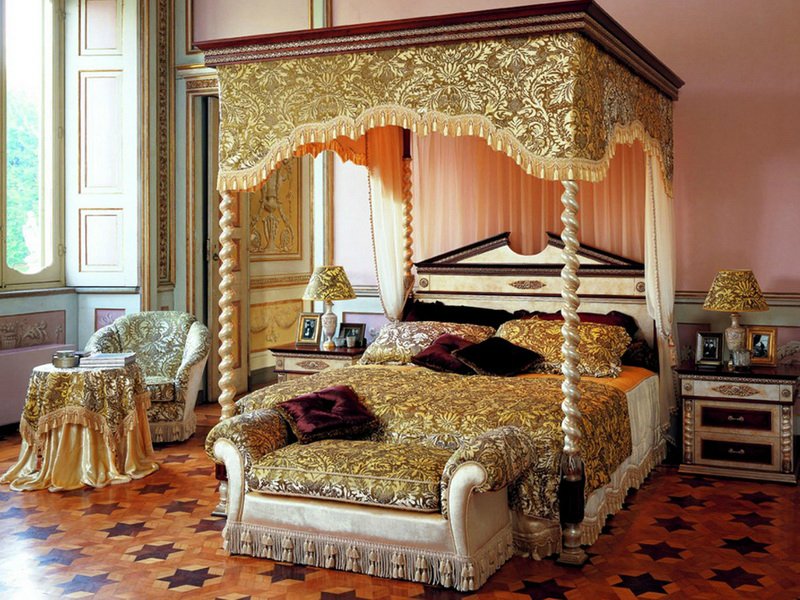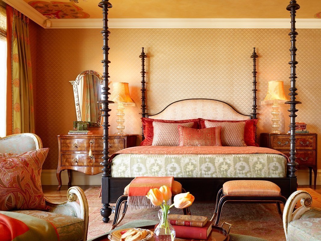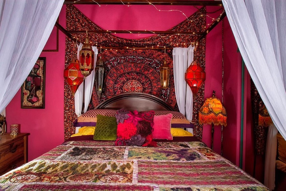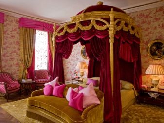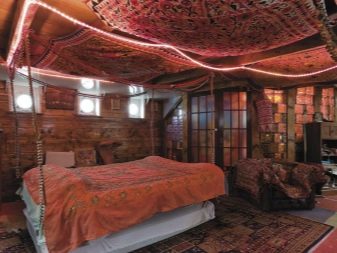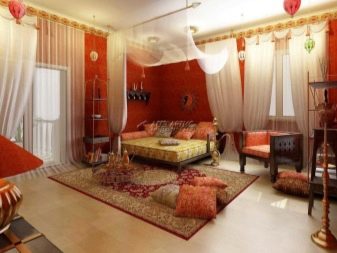 De lo contrario, al crear un interior, es importante seguir las reglas tradicionales: una gran cantidad de diferentes textiles, almohadas, marquesinas sobre la cama.