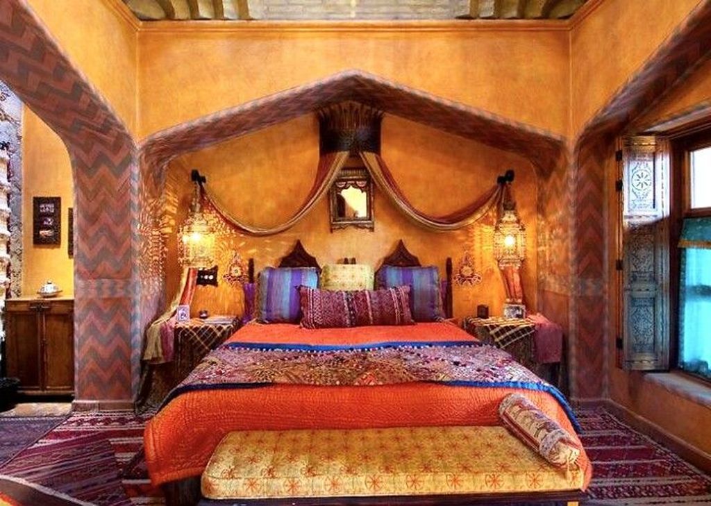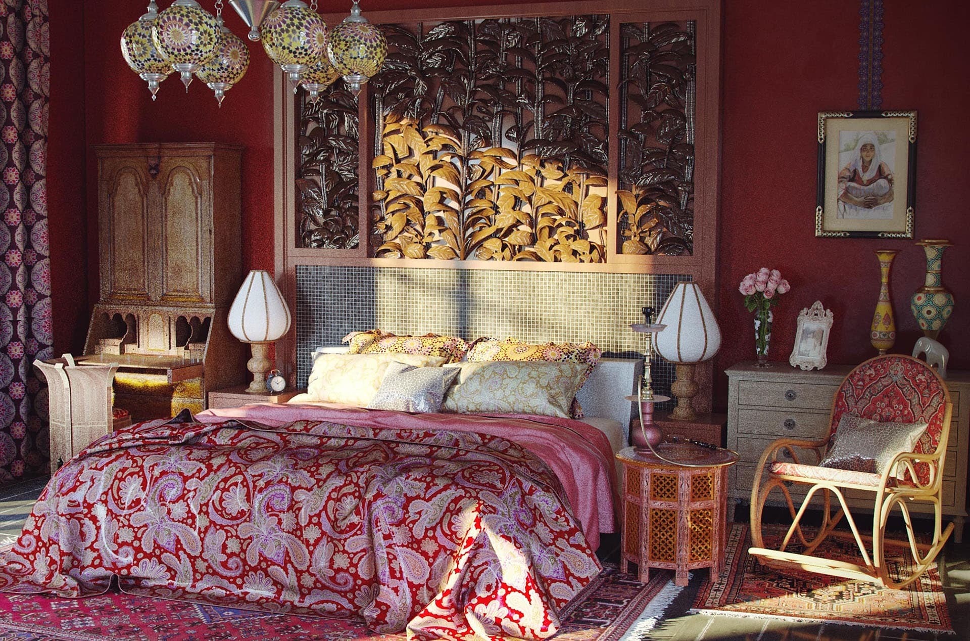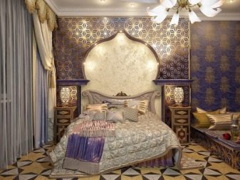 Un dormitorio de estilo oriental siempre se asocia con el lujo y la riqueza. El concepto de Oriente en el diseño es versátil. Al crear un interior de este tipo, se pueden utilizar elementos de decoración nacional de cualquier país, desde Japón hasta Marruecos. Sin embargo, hay ciertas reglas que se toman como base. Esto se aplica a elementos de interior, opciones de iluminación, combinaciones de colores generales y textiles.