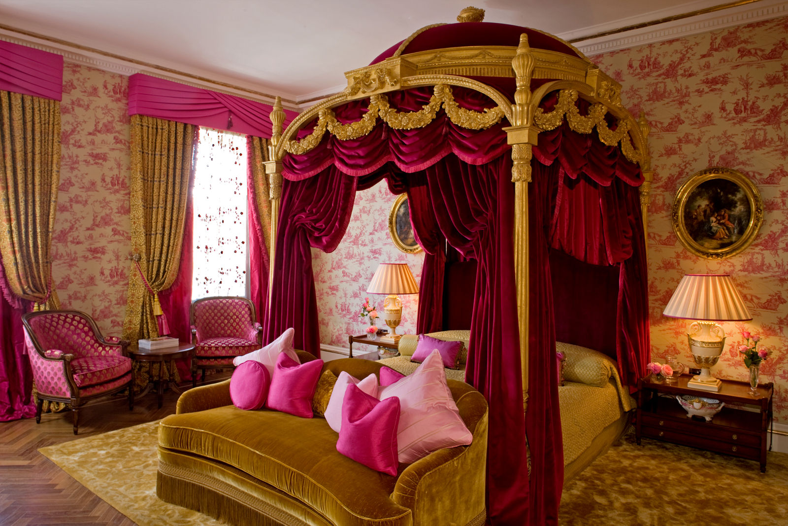 uso máximo de textiles en forma de lambrequines, cortinas pesadas;