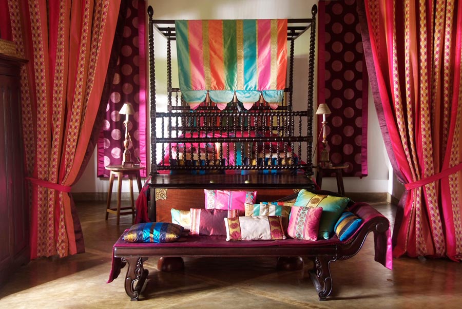 Se considera que una técnica interesante es la decoración del techo con cortinas utilizando textiles de seda.