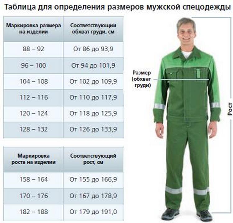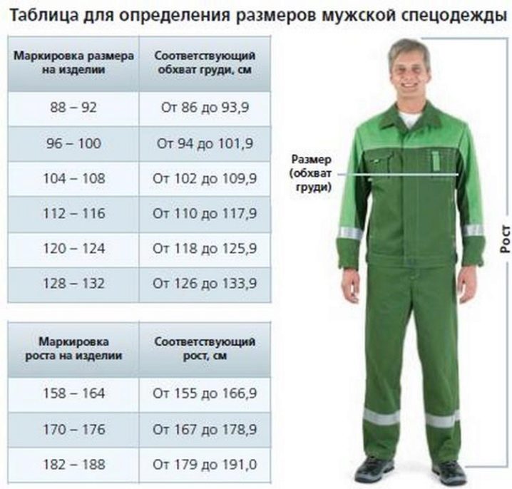 Es importante elegir el tamaño correcto, estrictamente de acuerdo con la complexión del empleado: después de ponerse un traje, el empleado debe sentir la máxima comodidad, debe poder inclinarse, sentarse y separar las extremidades.