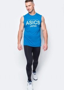 - Asics Es un conocido fabricante japonés de ropa deportiva, calzado y accesorios. Para los hombres, esta marca ofrece una serie de colecciones únicas de ropa diseñadas específicamente para fitness, atletismo, voleibol, tenis y jogging. Los modelos de ropa deportiva que ofrece el fabricante están confeccionados con tejidos naturales con un ligero añadido de fibras sintéticas.