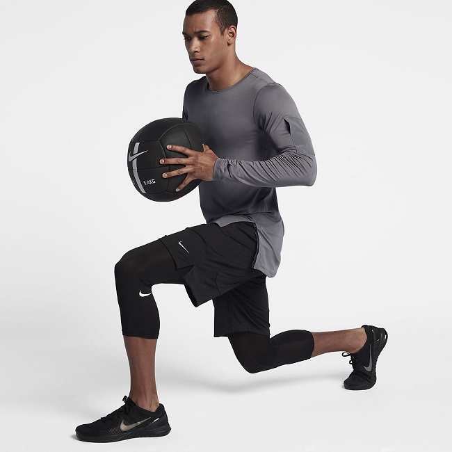 - Bermudas - el elemento más popular del equipamiento deportivo masculino. Para las actividades de fitness, los pantalones cortos con un largo ligeramente por encima de la rodilla, con un corte recto o ligeramente ajustado, son óptimos. Para el entrenamiento de fuerza (culturismo), los fabricantes modernos ofrecen pantalones cortos elásticos con efecto de compresión que brindan soporte muscular durante el ejercicio.