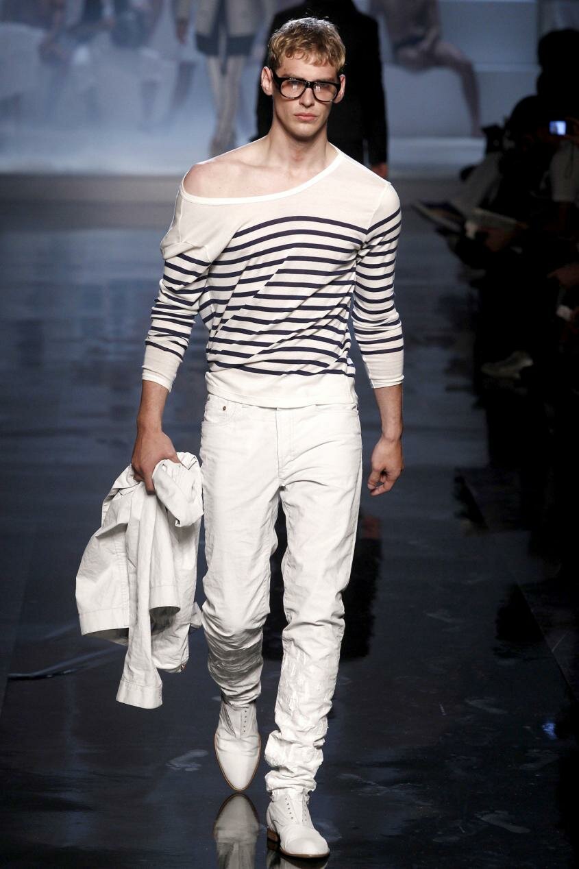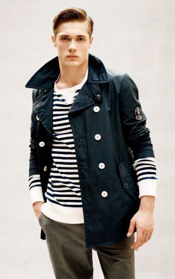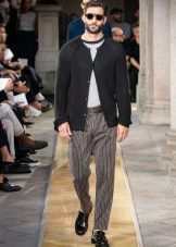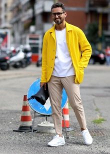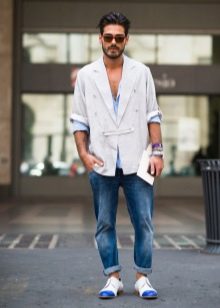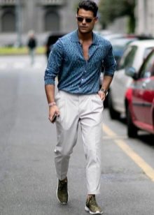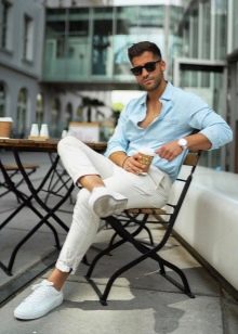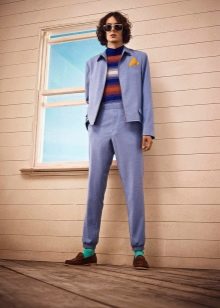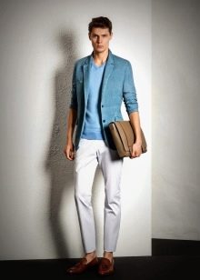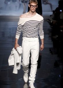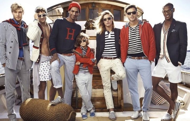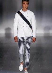 Entre las cosas más populares en esta dirección se encuentran los pantalones cortos alargados, los trajes de marinero, los chalecos, los jerseys, los pantalones ligeros. Zapatillas de deporte, zapatillas de deporte, mocasines se usan con mayor frecuencia como zapatos. Un pantalón blanco holgado y un blazer azul son un gran dúo respetable, que se adaptará perfectamente a una gorra y un reloj estilizado.