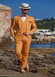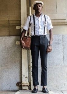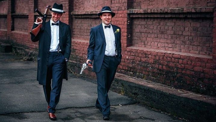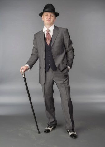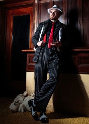 El estilo americano de los gánsteres de principios del siglo pasado combina notas de lujo sin sofisticación, coraje y libertad. Un traje de tres piezas en color oscuro, una camisa lacónica de rayas o cuadros, pantalones con tirantes, zapatos de charol son un conjunto típico de la imagen. Puedes comprar un traje blanco para ocasiones especiales, también necesitas sombrero, pajarita o corbata.