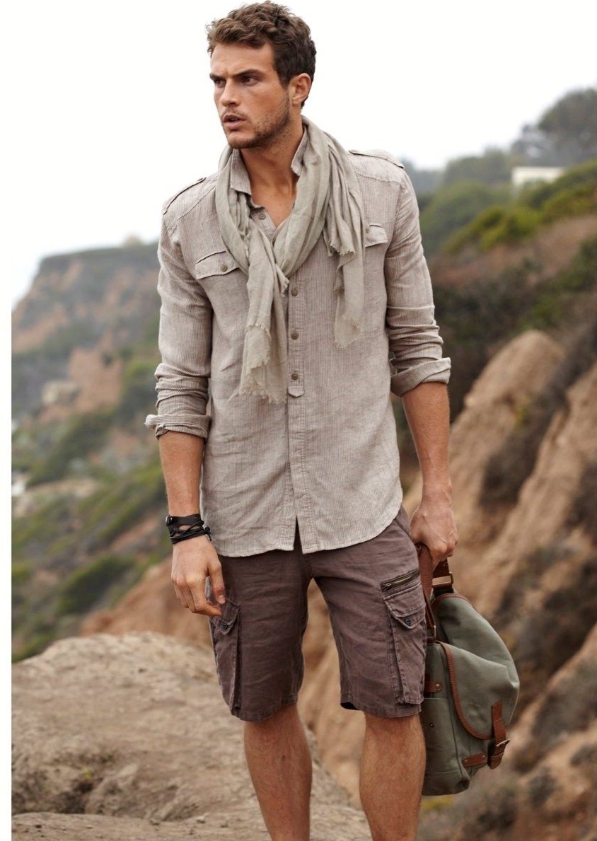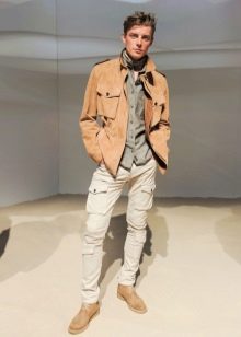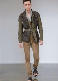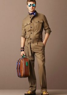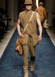 El estilo de los cazadores africanos es uno de los más relevantes, independientemente del país de residencia. Es muy adecuado para crear atuendos casuales en un entorno urbano. Por supuesto, se deben descartar atributos como una pistola y un casco de corcho. Pero pueden y deben usarse pantalones cortos, pantalones, chalecos cómodos, chaquetas y camisetas de algodón y lino. Las características distintivas de las cosas en esta dirección son los bolsillos de parche, las correas de los hombros, los remaches, una gama natural de tonos. Cinturones de cuero, un sombrero, un arnés completarán el look. Recientemente, los elementos de Safari se han utilizado activamente en equipos comerciales.