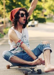 Estas imágenes se basan en el estilo de los patinadores de los ricos en nuevas direcciones de los años 70. La parte superior estándar de tal atuendo es una sudadera con capucha, una camiseta, una sudadera, un suéter. Puede usar una chaqueta sobre la sudadera con capucha y la camiseta. Encajará perfectamente en un conjunto de rompevientos y jeans, abrigos, parques. Los pantalones vaqueros con puños, chinos, joggers son adecuados como parte inferior. Los zapatos expresivos ayudarán a completar el atuendo: mocasines, zapatillas de deporte, mocasines.