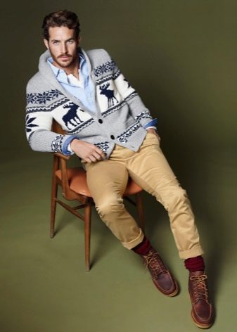 Los suéteres acogedores se combinan con camisas, chaquetas, chalecos, abrigos. El estilo escandinavo usa activamente cosas deportivas: sudaderas con capucha, sudaderas, sudaderas, pantalones cómodos. Los zapatos son lo más frescos y cómodos posible, los colores son en su mayoría tranquilos: gris, blanco, menta, azul, marrón, beige. Se utilizan activamente estampados en rayas, jaulas, geometría de cualquier plan, animalismo.