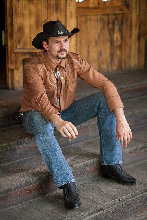 Jeans, una camisa en blanco o marrón o cuadros, un cinturón con una hebilla grande, un chaleco de cuero, botas con punta en punta: todas estas cosas se pueden combinar. Es mejor llevar sombrero solo para salidas y barbacoas.