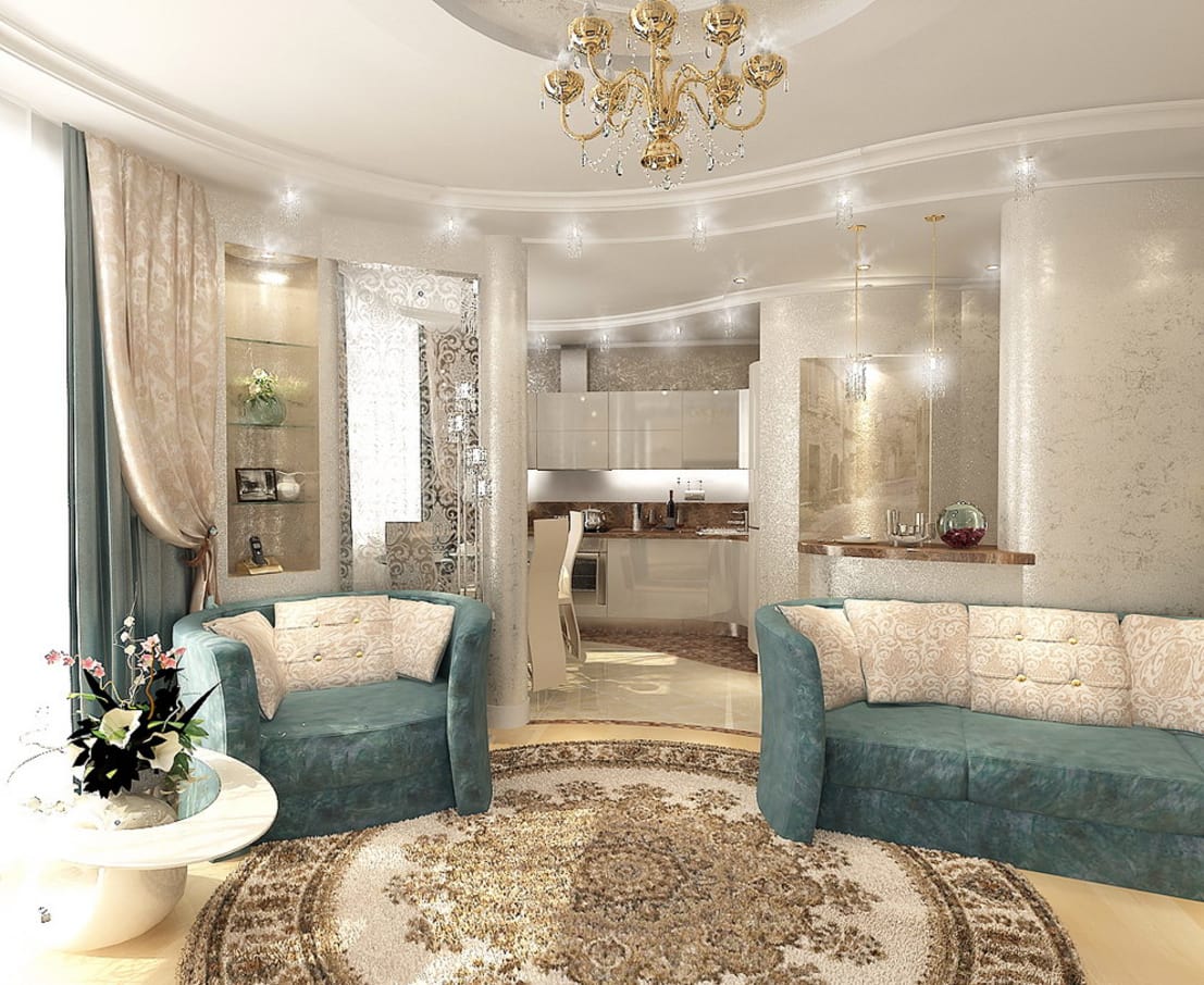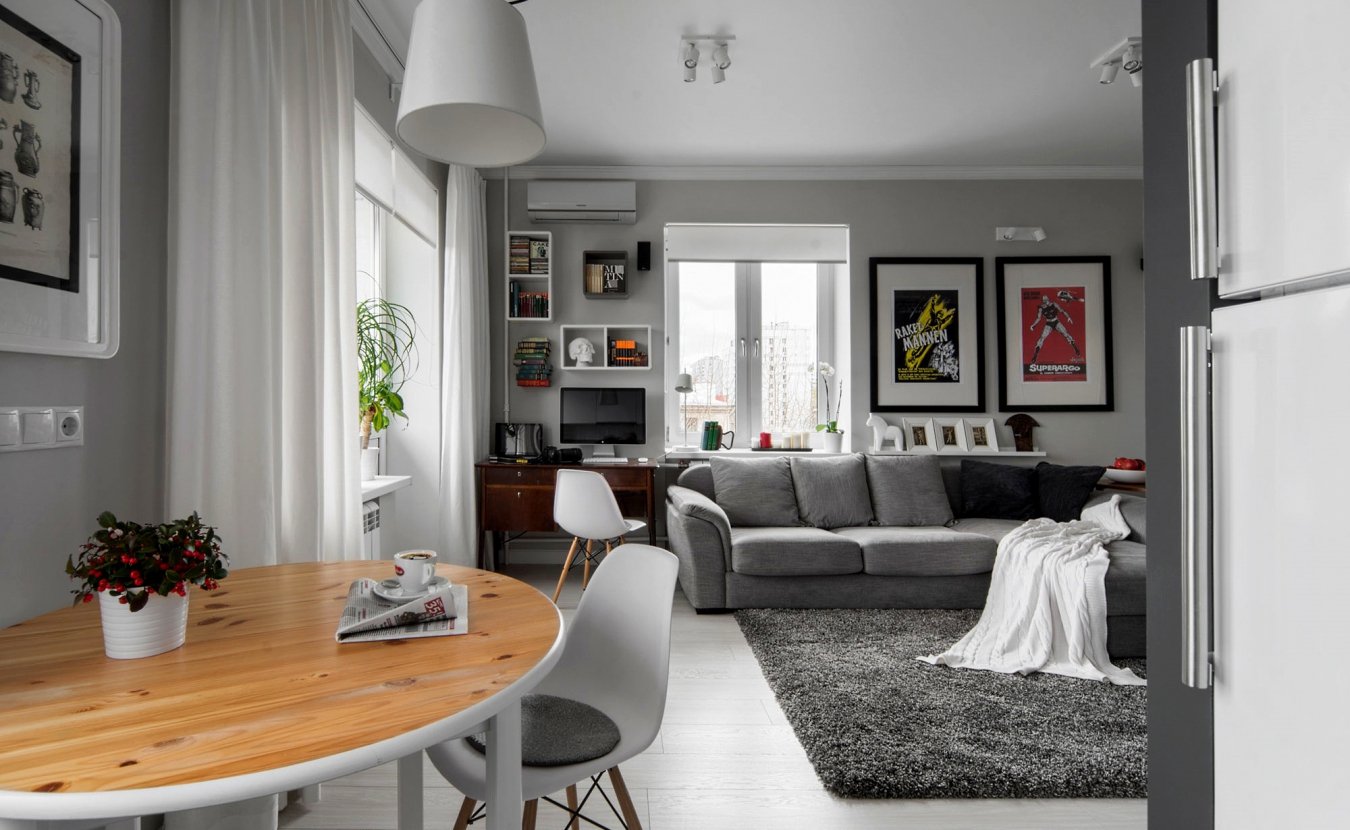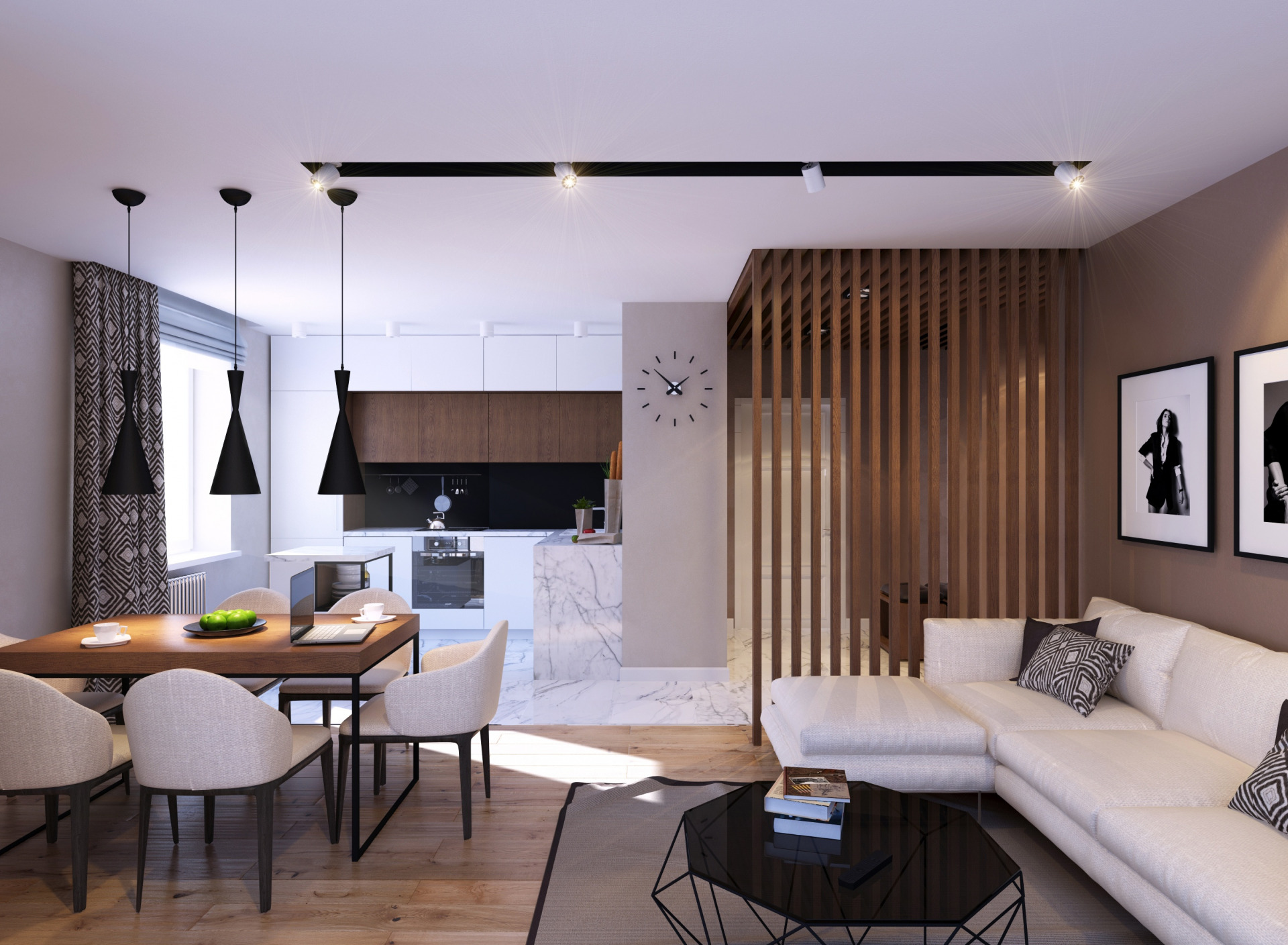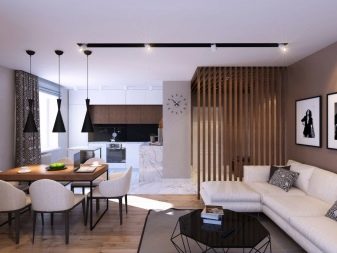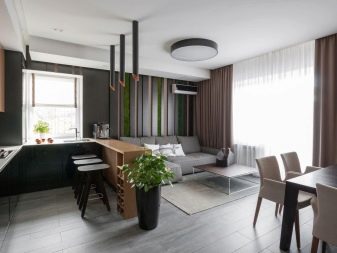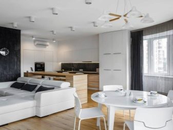 - El diseño libre permite dividir el espacio en zonas de la manera más conveniente. Además, el uso de particiones móviles le permitirá intercambiar zonas rápidamente y, si es necesario, organizar una actualización para el apartamento.