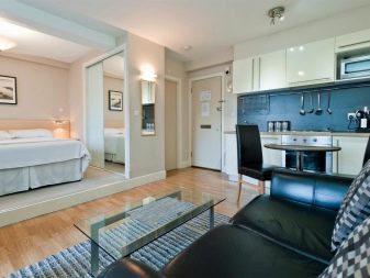 Las diferencias entre estos objetos inmobiliarios y el apartamento clásico de una habitación también son comprensibles: en el segundo caso, la cocina está ubicada en una habitación separada, y en los dos primeros, es parte de la sala de estar o incluso de toda la sala de estar. espacio.
