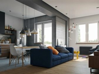 El diseño, o, más precisamente, la falta de planificación en el estudio, obliga al uso de la zonificación, independientemente de si la vivienda con un área de 35-36 metros cuadrados está ubicada en un edificio "Khrushchev" o en un edificio más espacioso. Departamento ocupa un lugar en un edificio nuevo. Vale la pena mencionar que para una mayor remodelación o la implementación de otros proyectos, es mejor dividir el espacio usando restricciones móviles. Al realizar la zonificación, es importante tener en cuenta las necesidades de una familia en particular que vivirá en el estudio, porque alguien necesitará un escritorio y, para alguien, asientos adicionales para los invitados.