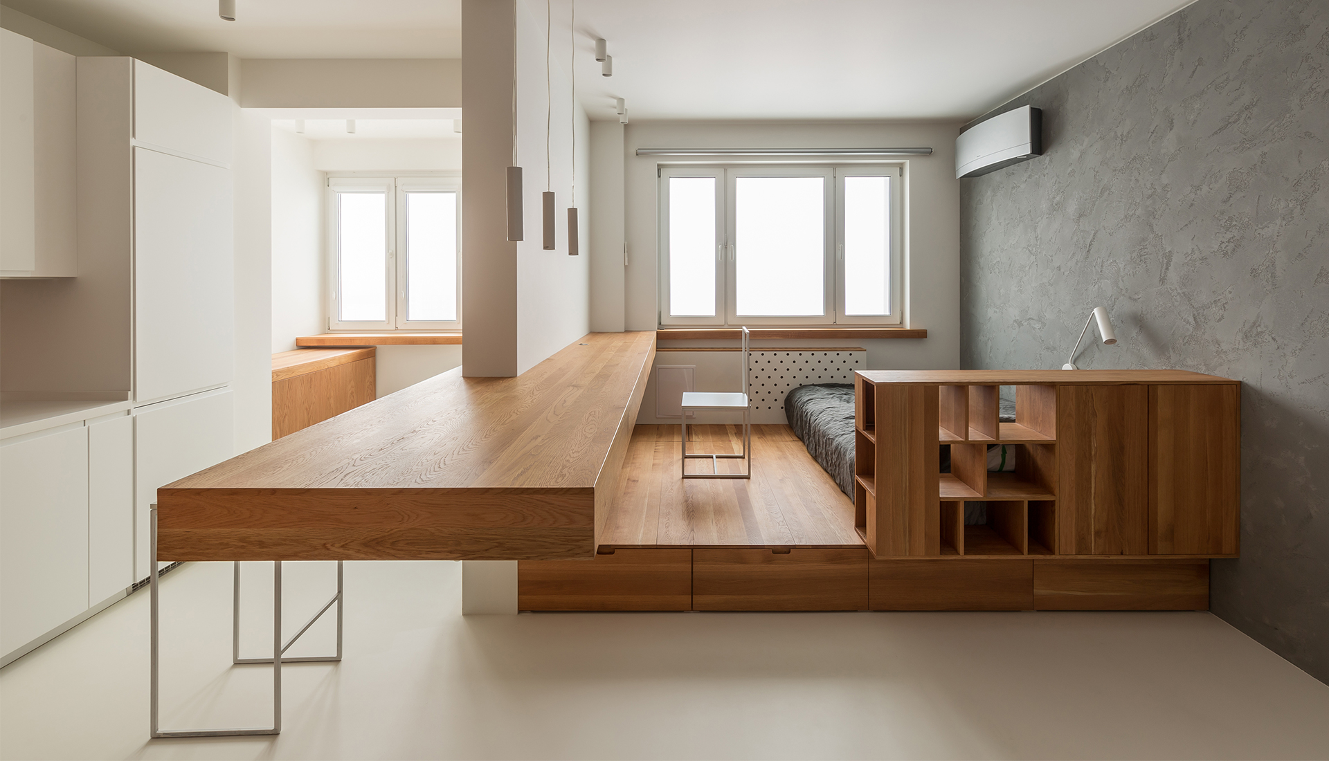 La mayoría de las veces, los propietarios de estudios son jóvenes solteros que recién comienzan su vida adulta. Es muy posible que una persona organice un dormitorio, una cocina, un comedor y un estudio en un espacio pequeño. Básicamente, una pareja joven también puede establecerse en un área pequeña, especialmente si esta vivienda se percibe como un punto de partida, y se planea una mayor expansión.