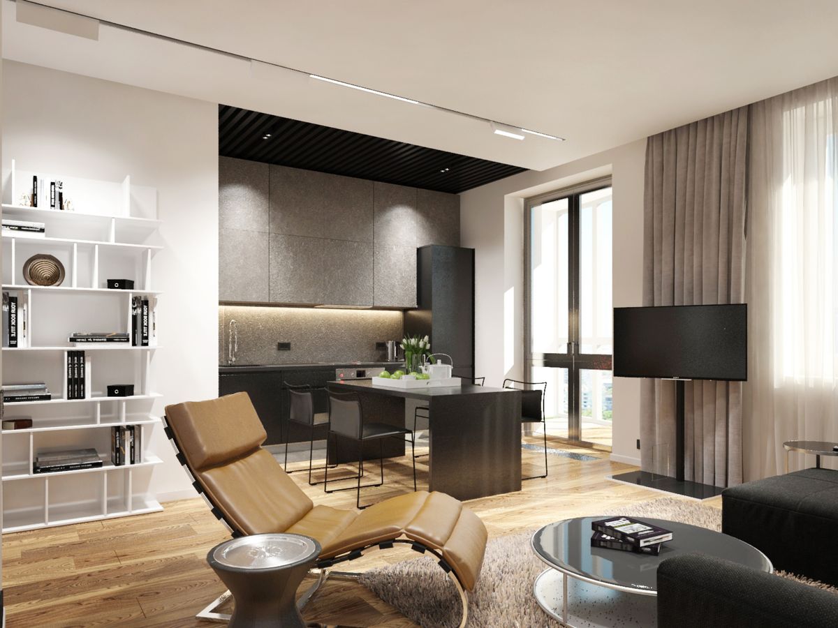 No hay planificación en los estudios: los diseñadores determinan el lugar de los baños, pero de lo contrario, el propietario es libre de hacer lo que quiera. Visualmente, el estudio parece mucho más amplio y libre que un simple apartamento de una habitación, gracias a la abundancia de luz y aire.