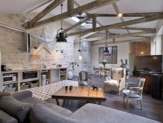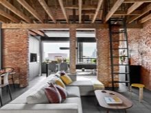 - Renovación y acabado... Pueden asociarse con buenos ahorros. Si deja, por ejemplo, techos en bruto, esto ya le permite no gastar dinero en estructuras de tensión o placas de yeso. Si se muestran los bloques de particiones interiores, esto también es un ahorro en reparación. Incluso el cableado en el desván rara vez se oculta en la pared.