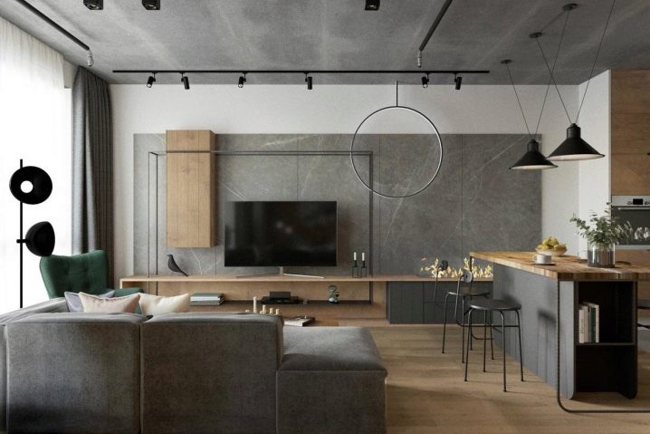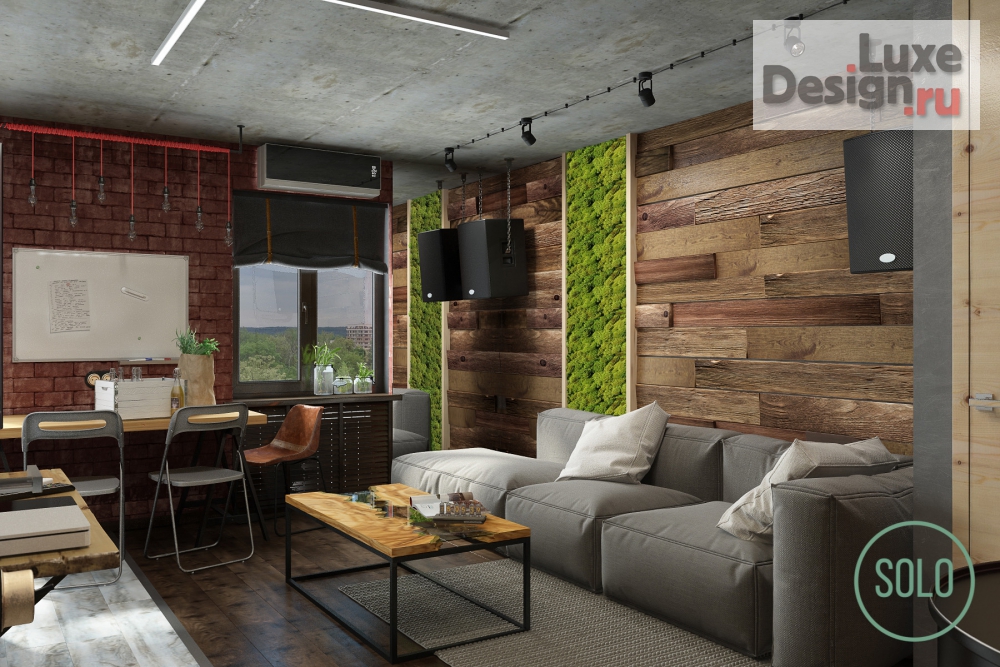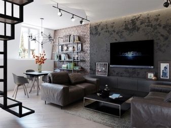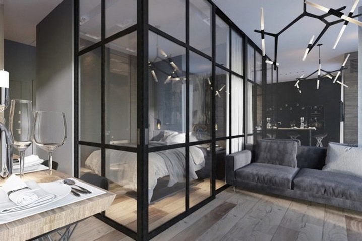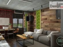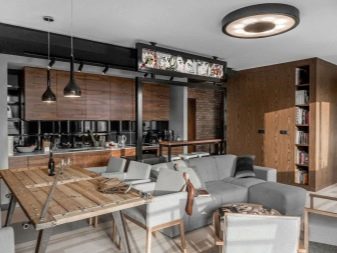 metal, madera y vidrio - todo esto se utiliza activamente y puede estar presente en el estudio en diferentes proporciones;