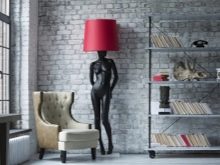 Lámparas de pie dimensionales (posiblemente también retro) y lámparas de mesa rústicas se utilizan activamente en el desván.