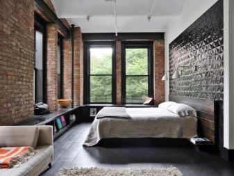 - las camas en este estilo requieren la máxima simplicidad, una decoración y decoración mínimas, porque todo está en un espacio común, y no se debe acentuar un detalle tan íntimo de la situación;