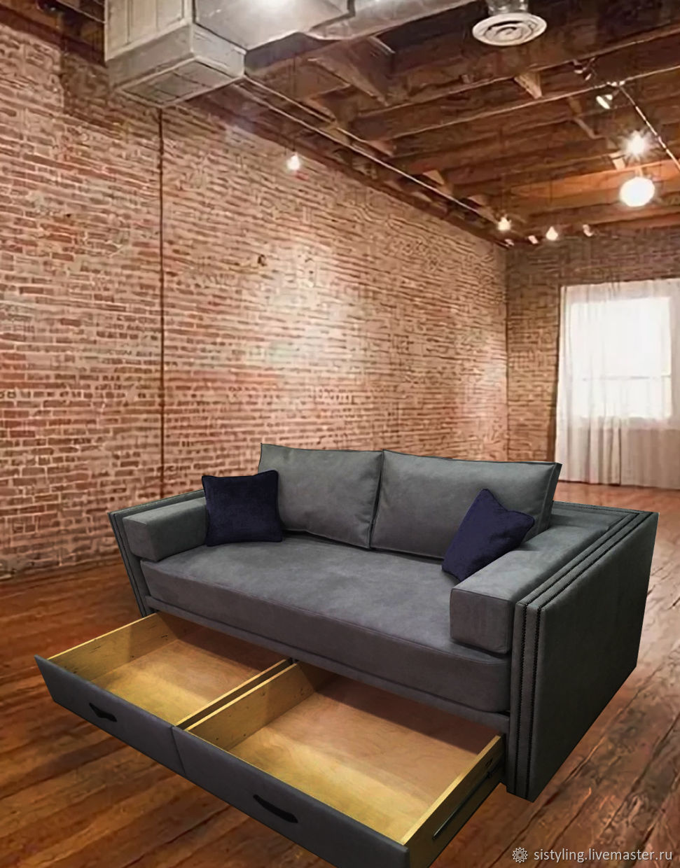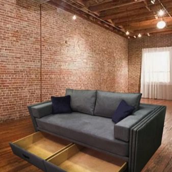 - loft es un estilo funcional, y por lo tanto el sofá puede tener amplias cajas de almacenamiento;