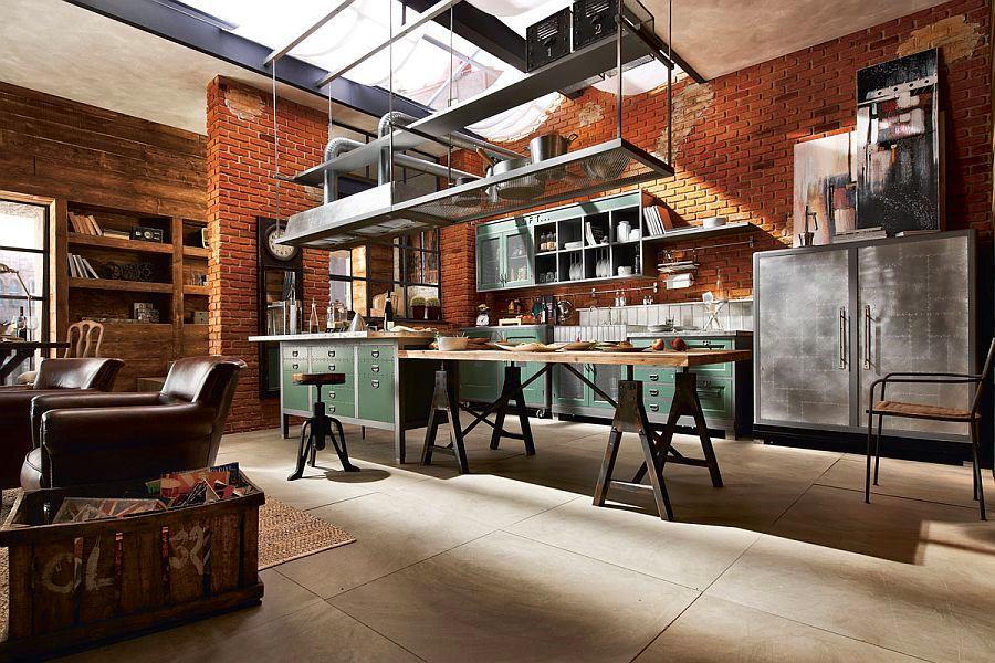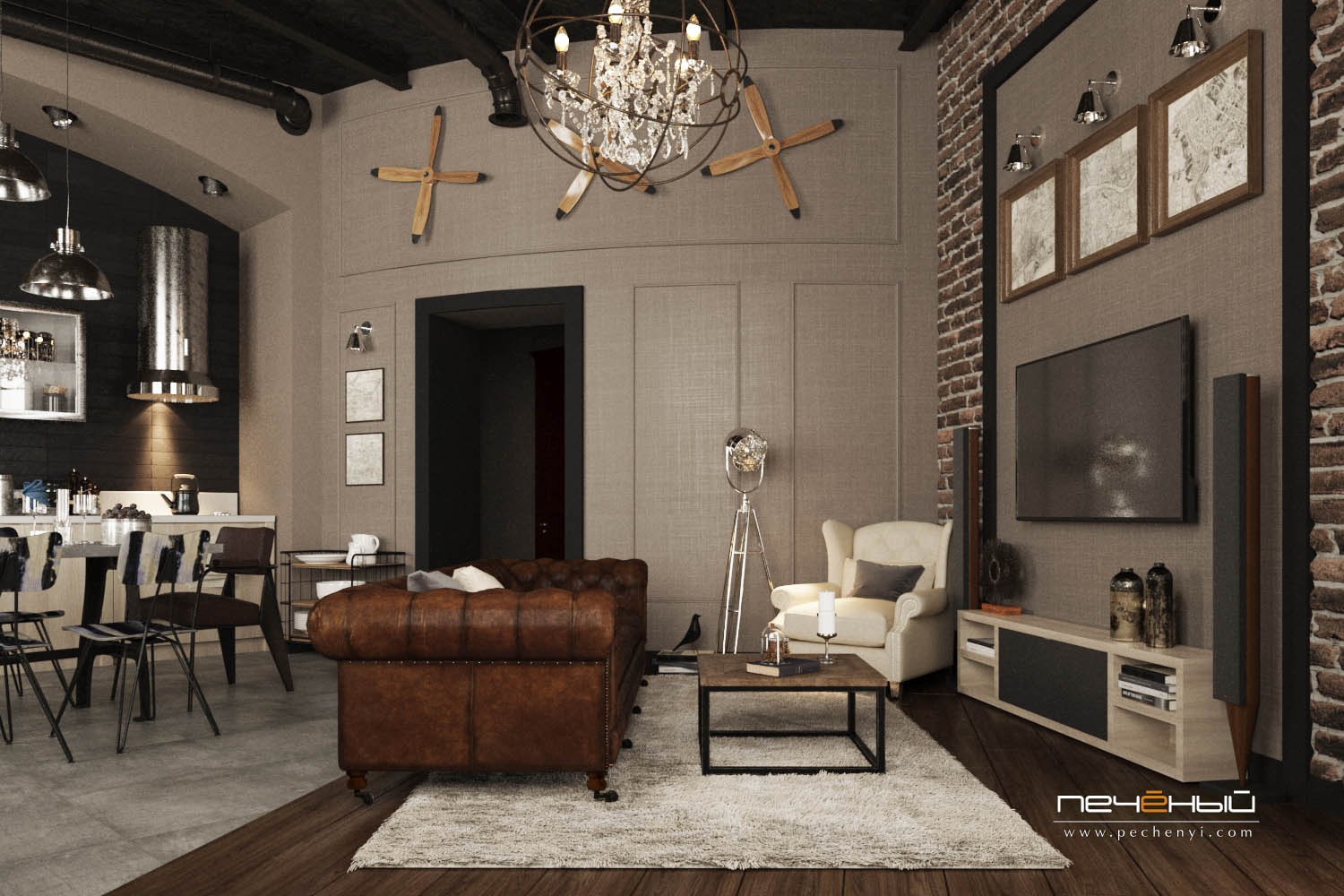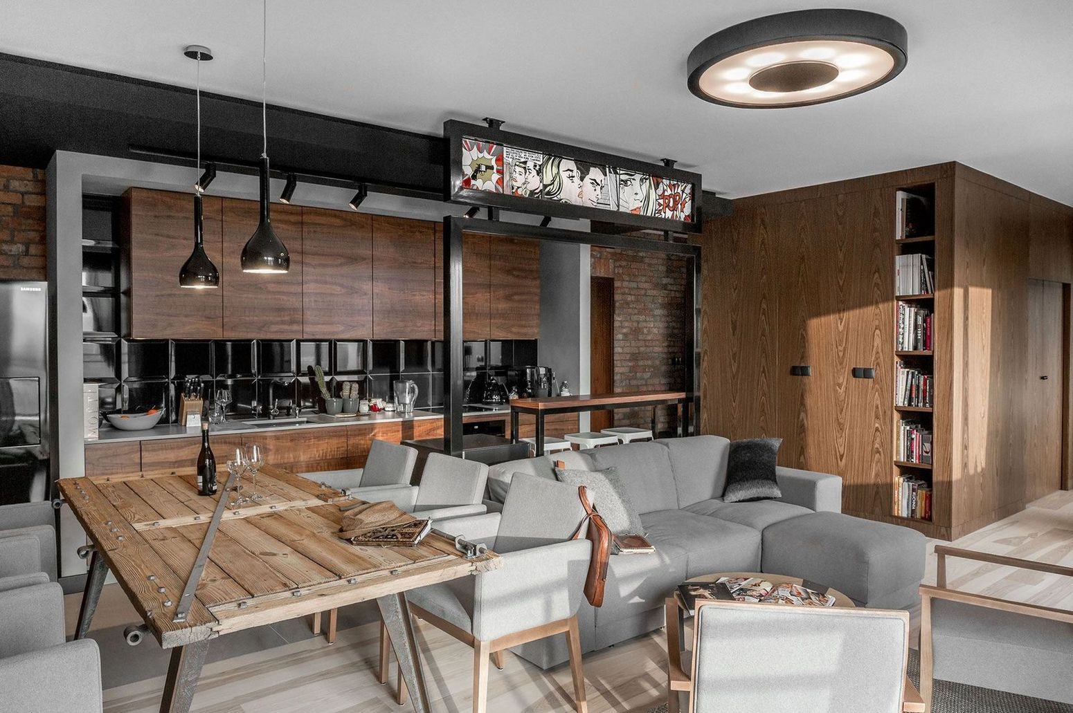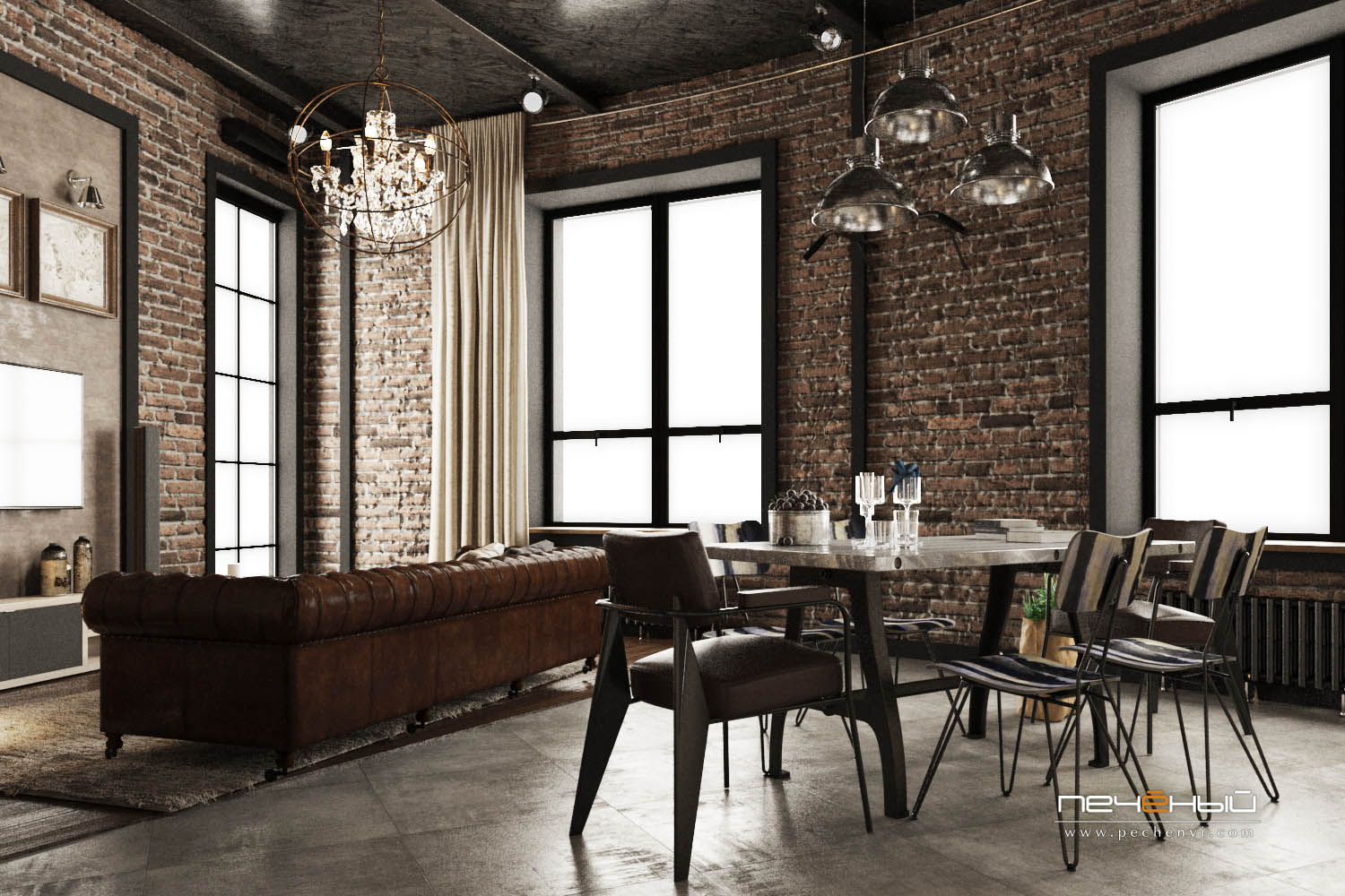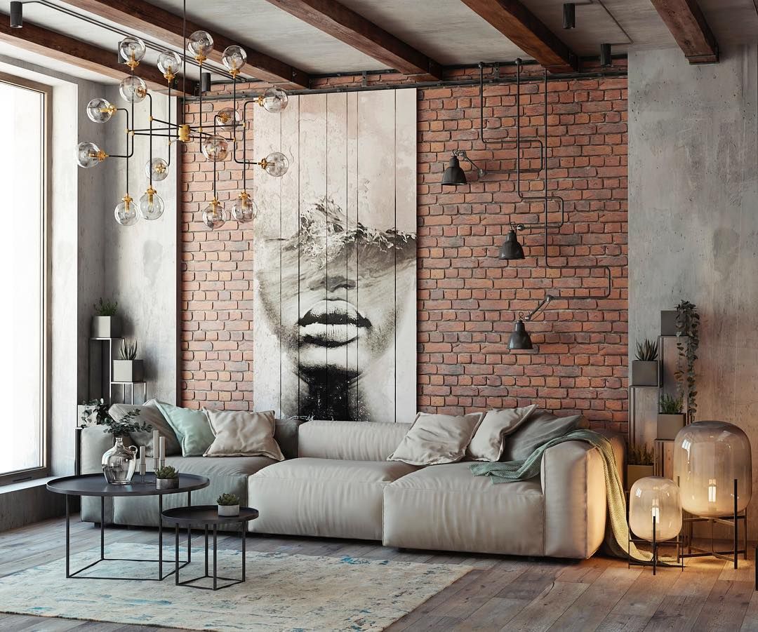 Color... El ambiente industrial del loft está dominado por terracota gris y apagada. El gris también tiene diferentes tonos de hormigón, y la terracota se reduce a la expresividad del ladrillo viejo y la madera vieja. Esta es una base, un fondo que ayudará a combinar objetos que no son tan característicos de un loft en uno solo.