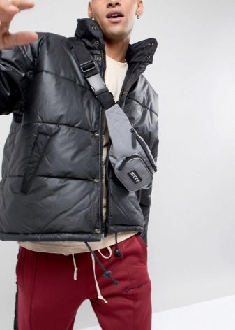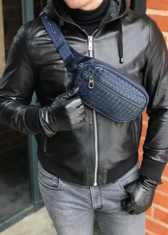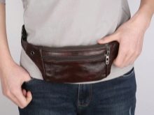Para un traje de negocios, también puede encontrar un modelo estricto y lacónico adecuado. Pero solo una riñonera con un diseño llamativo y mucha decoración encajará en una imagen brillante.