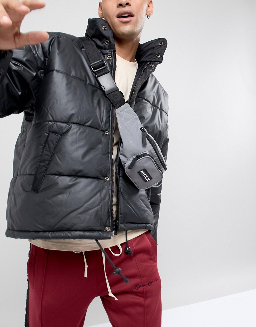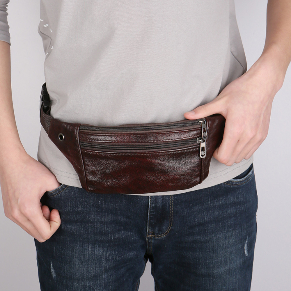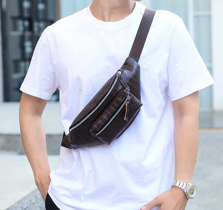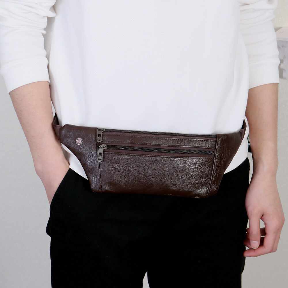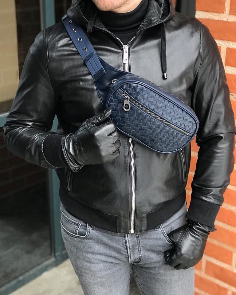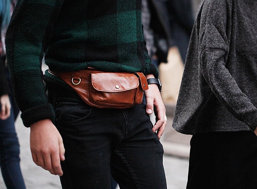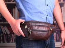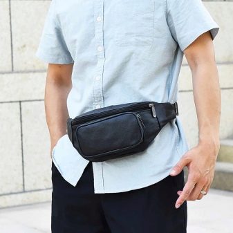 El bolso de hombre con cinturón en la cintura combina bien con cualquier ropa casual - jeans, suéteres, camisetas. Para que se vea apropiado, el color y la textura del material deben superponerse con cualquier prenda de vestir, zapatos u otros accesorios.