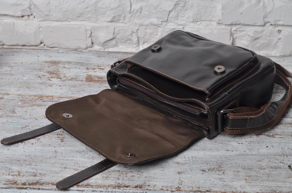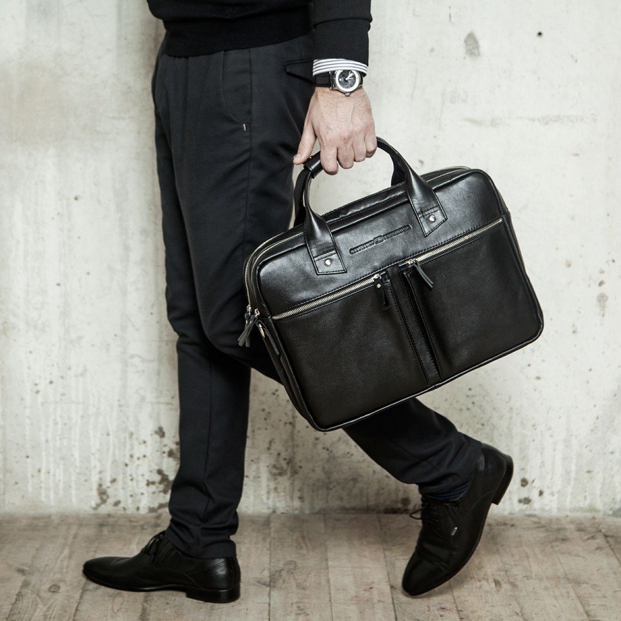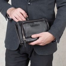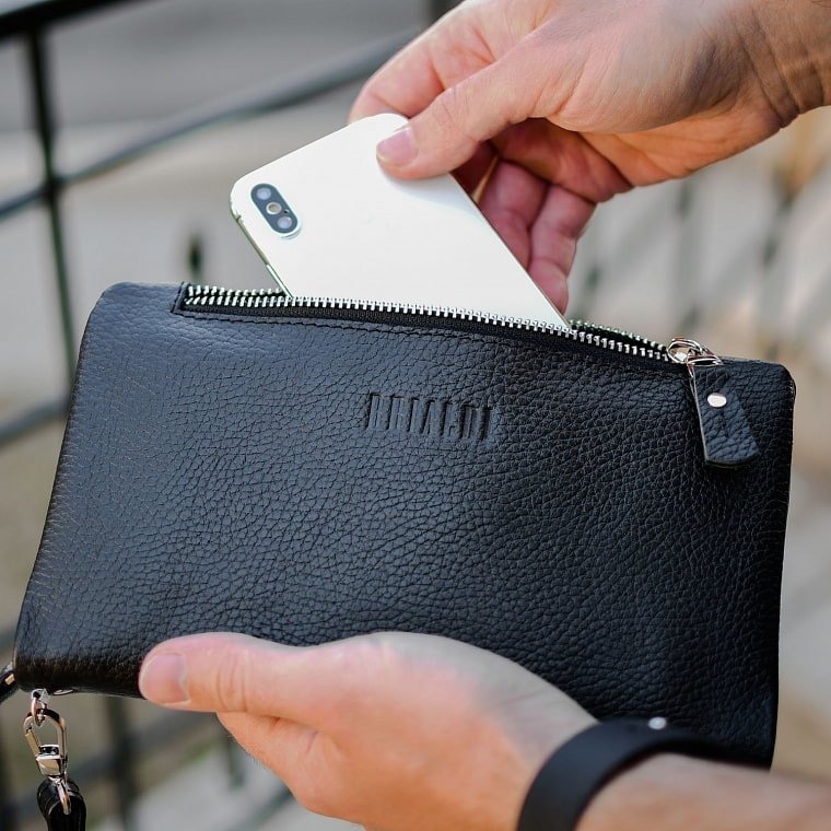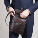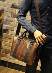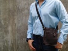 Un bolso de hombre moderno hecho de cuero genuino se ve especialmente elegante y masculino. Tal accesorio puede enriquecer muchas imágenes.