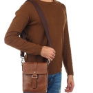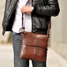 Estos modelos de bolsos para hombre son inferiores en tamaño a los carteros descritos anteriormente, pero tienen muchas características similares con ellos. La tableta tiene un formato vertical. Las hojas A-4 se pueden colocar fácilmente en una bolsa de este tipo. Aquí no hay tapa de válvula y el mango se fija con un mosquetón duradero (la mayoría de las veces de metal).