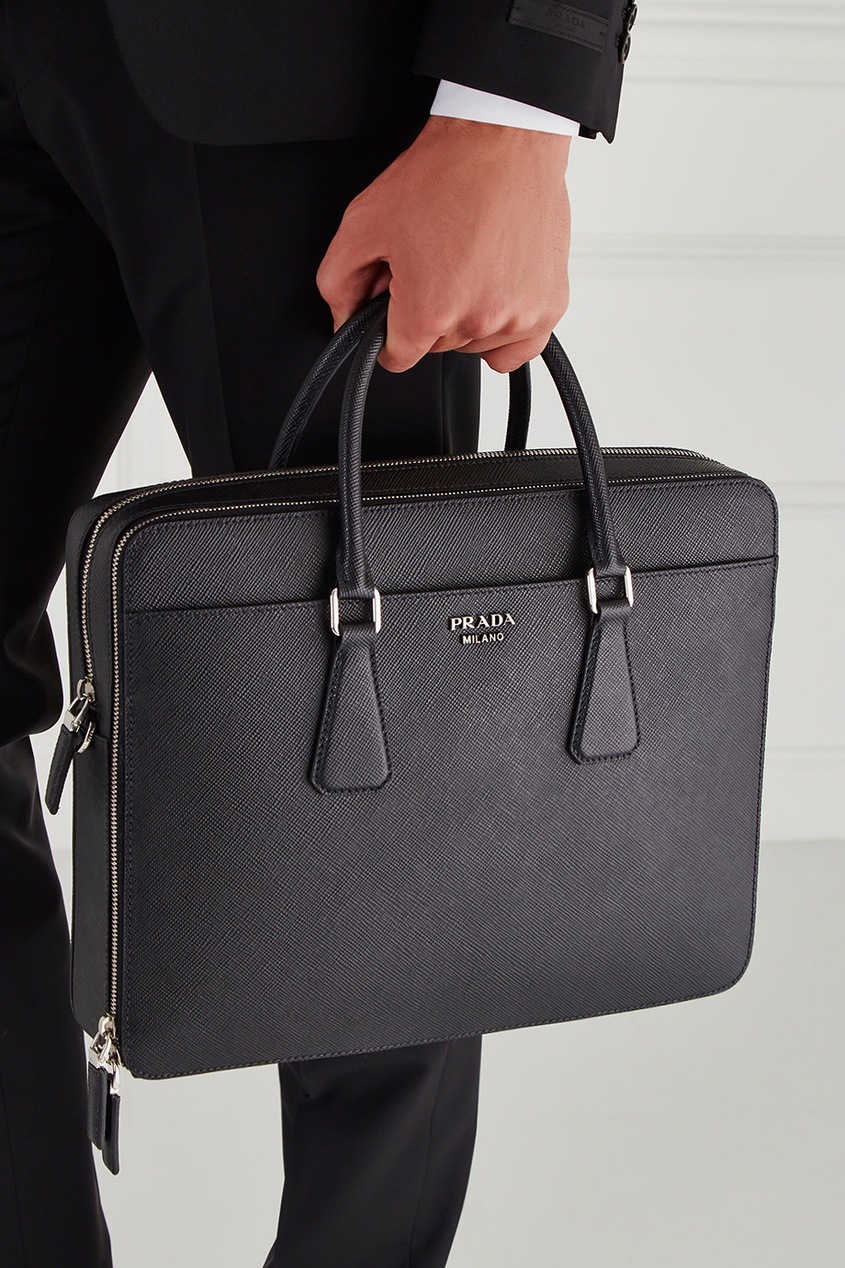 - Prada. Los accesorios de cuero para hombre de esta marca se distinguen por una calidad insuperable y un diseño increíblemente elegante. Los bolsos Elite se presentan en todas las variantes posibles. Los modelos están hechos de cuero liso y texturizado. Los colores de las bolsas también varían: pueden ser azul, gris, negro, rojo y muchos otros.