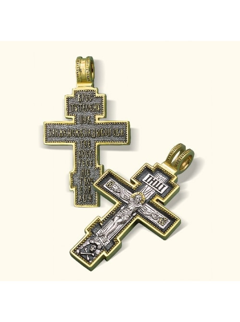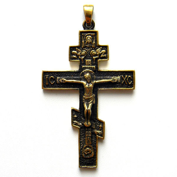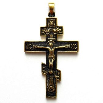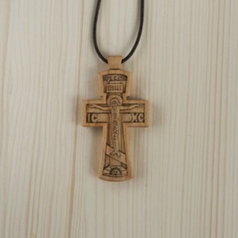 La última opción se considera un poderoso talismán utilizado contra los espíritus malignos. Puede distinguir un producto de este tipo por una placa en la cabeza. Solía usarse para escribir delitos cometidos por una persona. Se sabe por la historia que los crímenes de Jesús nunca fueron nombrados, por eso está escrito con la abreviatura Jesús de Nazaret, Rey de los Judíos. La línea a los pies, que se coloca oblicuamente, es un símbolo del camino por el que una persona pasa de una vida pecaminosa a una justa.