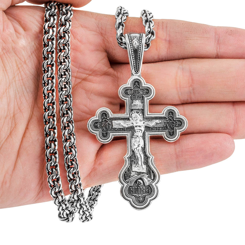 Si hablamos del tamaño de la cruz pectoral, entonces puede ser tanto de tamaño grande como mediano, solo que a veces los hombres prefieren una pequeña cuando quieren ocultar el símbolo de la fe a los demás, en lugar de demostrar la decoración. Qué opción elegir: todos deciden por sí mismos. Hay una gran cantidad de opciones a la venta de cualquier tamaño.