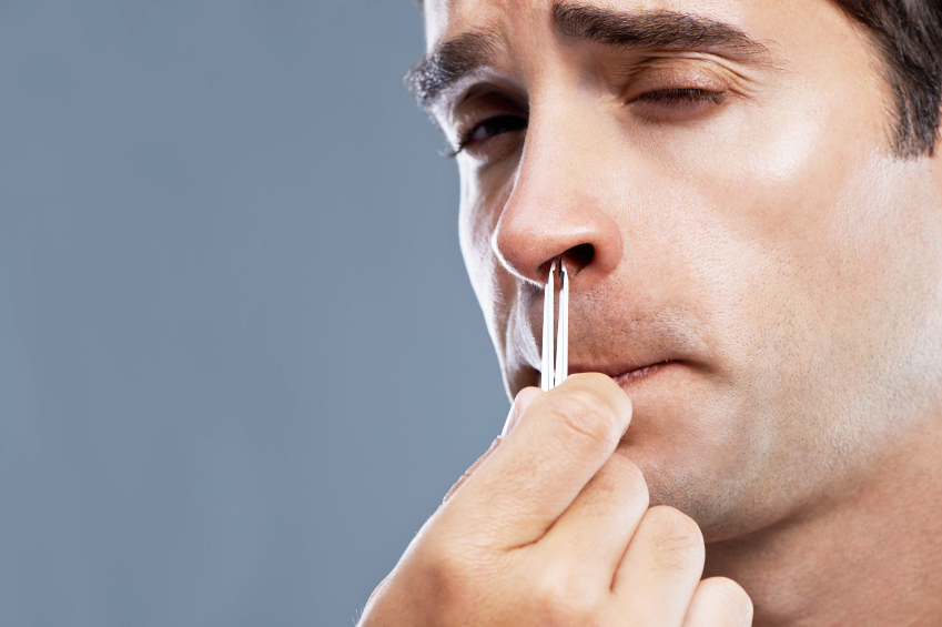 El método más utilizado. Saca los pelos con unas pinzas para cejas. Es bastante doloroso, los ojos pueden empezar a lagrimear o estornudar un par de veces. El desplume brusco puede dañar tanto la membrana mucosa que comienza a sangrar. Por eso, actúa con suavidad, no te dejes llevar.
