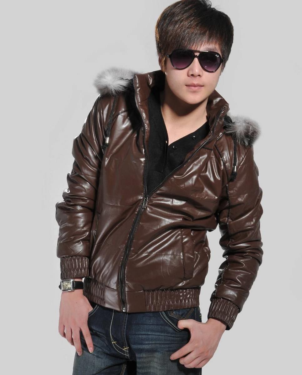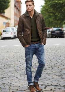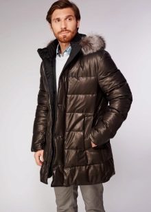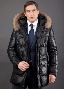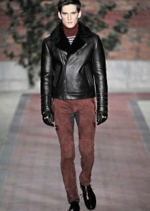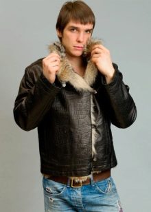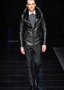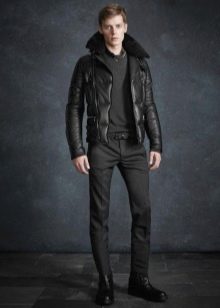 - Los hombres altos con una figura no estándar y un estilo creativo deben prestar atención a las chaquetas de cuero, que no hace mucho tiempo comenzaron a coserse en versiones de invierno. Una gran cantidad de sujetadores y bolsillos expande y acorta visualmente el torso.