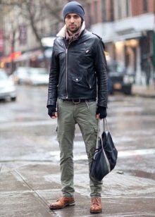 Lo mejor es usar un suéter de punto grueso debajo de la chaqueta. Se ve elegante y también protege del frío; en tal conjunto, ninguna helada es terrible. Por lo general, una chaqueta de cuero reemplaza la capucha; alternativamente, puede usar un gorro de punto. Las gorras y sombreros con orejeras se verán ridículos con chaquetas de cuero, recordando una reliquia del pasado.
