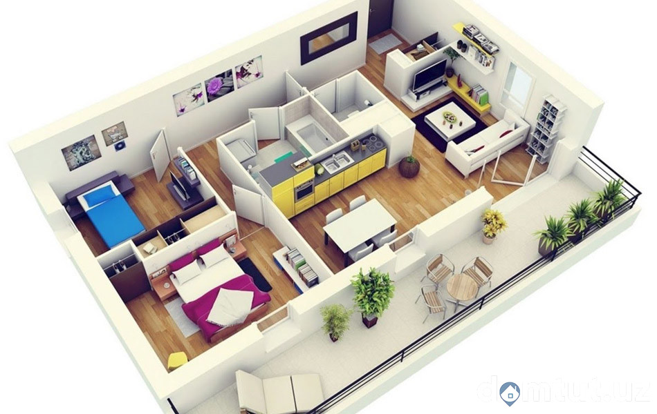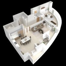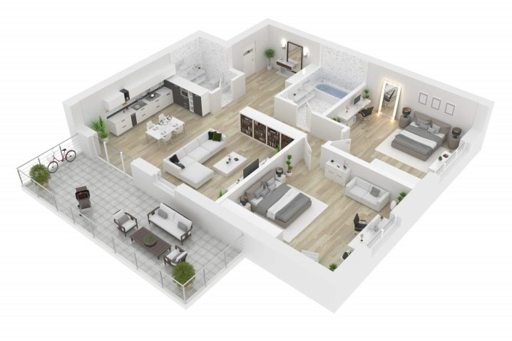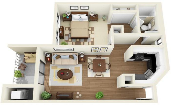 Si nous parlons d'un appartement de deux pièces, alors il ressemblera à un studio plus une chambre, et un appartement de trois pièces ressemblera à un studio plus deux pièces.