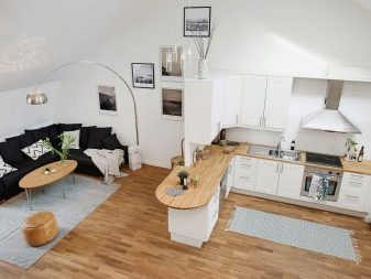 Il y a un autre moment utile dans la combinaison de pièces: maintenant, vous ne laisserez plus la vaisselle sale pour plus tard, vous devrez la laver tout de suite afin de ne pas gâcher l'aspect esthétique de toute la pièce. Une bonne occasion de lutter contre la paresse et de s'habituer à la commande.