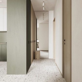 Vous devez comprendre que une grande pièce devient non seulement due à la combinaison du hall et de la cuisine - une partie du couloir la rejoint, auquel certains mètres sont emportés avec zèle. On sait à quel point les couloirs sont inutiles : à cause de la présence de portes, on ne peut même pas y mettre de meubles. Dans les appartements en euros, il reste un petit hall d'entrée et les couloirs de passage disparaissent.