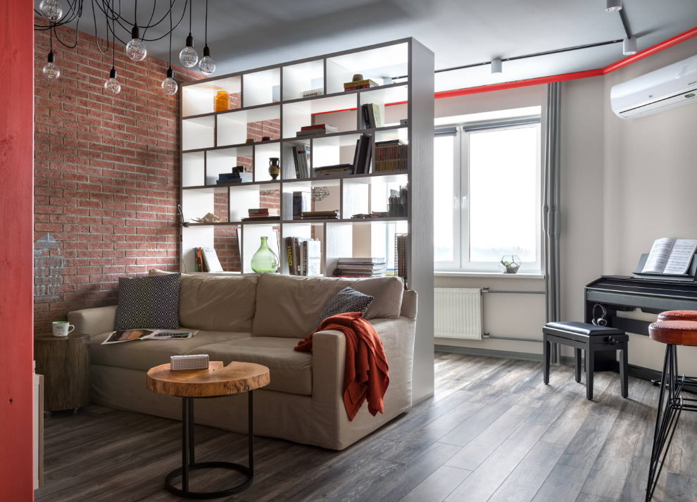 Pour le rendre confortable dans une grande pièce, il est divisé en zones. La séparation se fait de différentes manières.